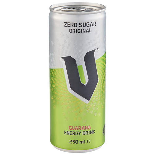 V Energy drink, known by its' friends as 'the green one'. Energising, smooth, fruity flavours of citrus and apple. Plus, it's zero sugar!
