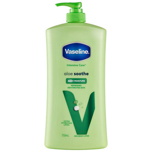 Vaseline Intensive Care Body Lotion Aloe Soothe 750mL is clinically proven to moisturise deeply to soothe dry skin with the first application. Restores and refreshes dry skin without feeling greasy.