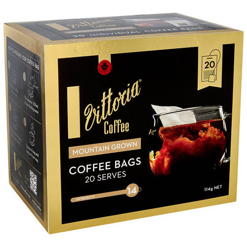 Experience the rich, authentic taste of Italian coffee with Vittoria's convenient single-serve coffee bags. Crafted from 100% Arabica beans, these bags deliver the flavor and aroma reminiscent of a barista-made coffee, making them perfect for those who appreciate quality and convenience.