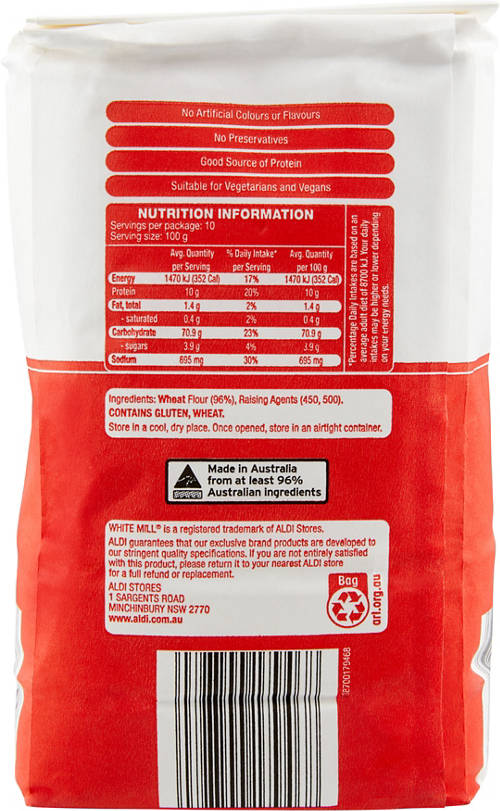 Australian grown self raising flour, unbleached and triple sifted. Perfect for home baking.