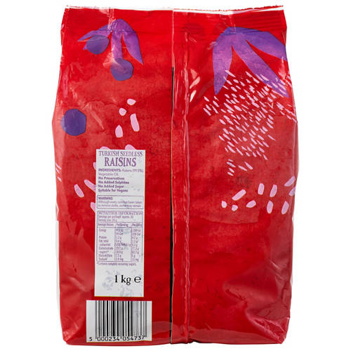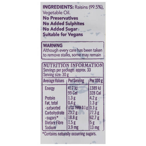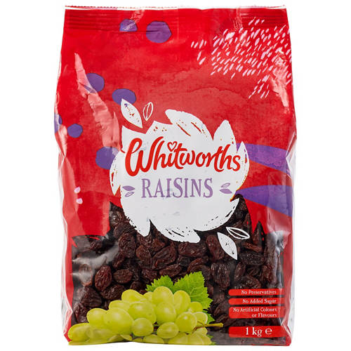 100% natural with no added sugar, Whitworths Raisins are sun-dried and packed with goodness. Perfect for baking, snacking, or adding to your breakfast, these high-quality raisins are a great source of fibre and energy and a cupboard essential for every kitchen. Suitable for vegans.