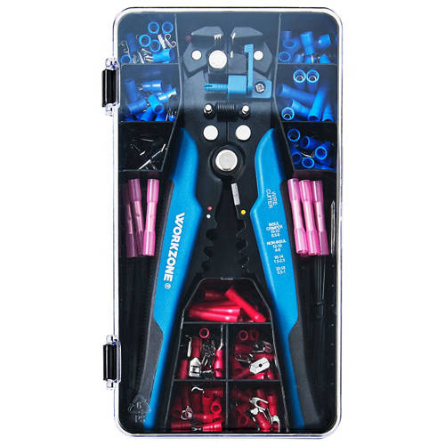 Includes crimping tool, cable ties, wire, cable lugs, flat plugs, flat plug sleeves, butt connectors and conductor end sleeves
