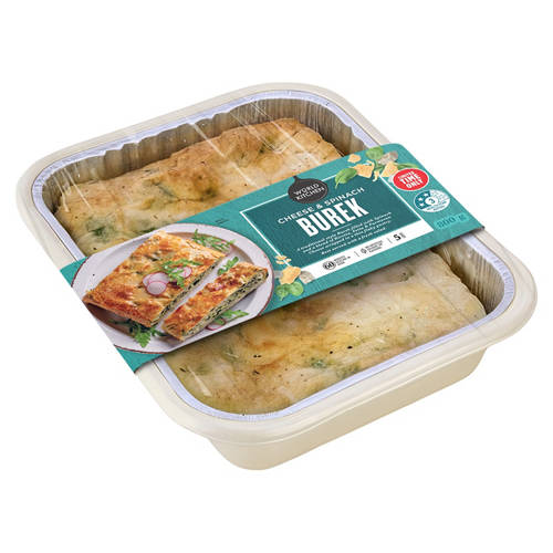 A traditional style burek filled with spinach, and a blend of ricotta, fetta & parmesan cheese wrapped in a thin, flaky pastry. For the ultimate family dinner, we recommend serving with a fresh salad. This comforting dish serves 5, and contains no artificial colours or flavours.