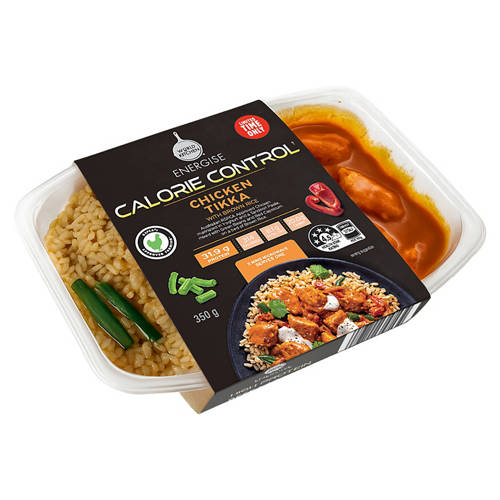 Our Energise calorie control chicken tikka is high on flavour, controlled on calories. Made with Australian RSPCA approved chicken, that have been marinated in a yoghurt and tandoori paste, it is mixed with green beans and red capsicum, and served on a bed of brown rice. 3 minutes to heat and eat.