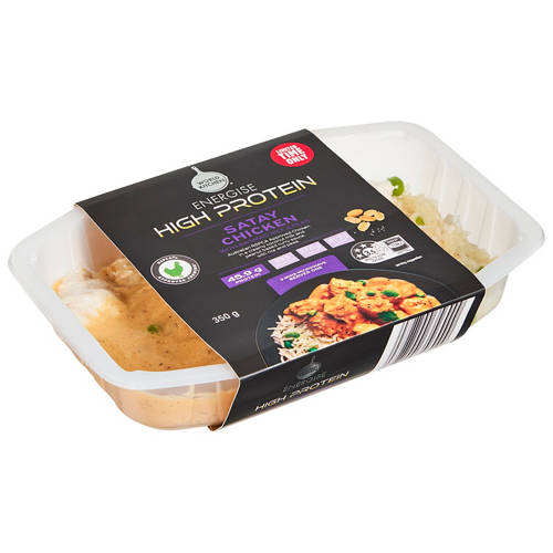 Australian RSPCA approved chicken in a creamy coconut milk and peanut based curry sauce, with rice and peas.