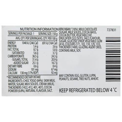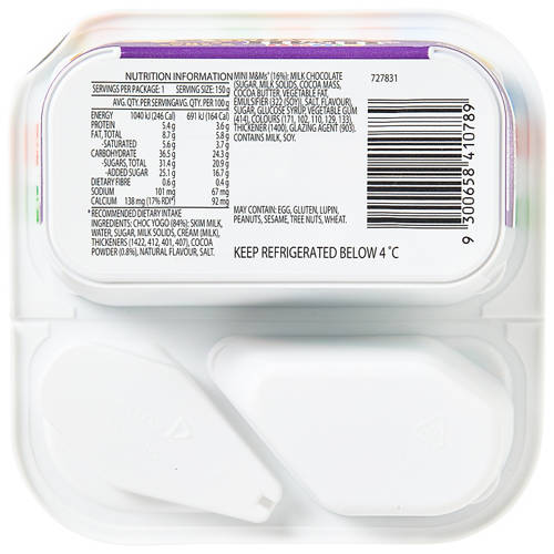 Creamy chocolate Yogo paired with the crunch and colour of M&M's. It’s the perfect mix of smooth and crunchy, made for snack time smiles and chocolate lovers of all ages.