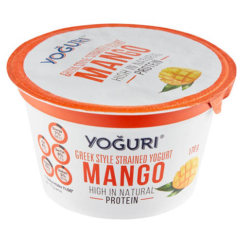 Thick and creamy Greek style strained yogurt with mango pieces. High in natural protein. Made in Australia.